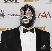 Mil Máscaras pictured wearing his mask during a public event. It is common for wrestlers to wear their masks in public to maintain kayfabe
