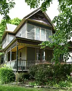 The Professor Charles O. Denny House is a historic building located in Des Moines, Iowa, United States. It is a 2½-story dwelling that follows an irregular plan. It features a hipped roof with gablets and additional gables, fishscale shingles, bargeboards, reeded panels that form the cornice, and a wraparound porch with a pedimented entry. The property on which it stands is one of ten plats that were owned by Drake University. The University sold the lot to C.O. Denny in 1892, and he had the house built the following year. Denny was a Latin professor at Drake and lived nearby. He seems to have bought the property for speculative purposes. Its significance is attributed to the effect of the University's innovative financing techniques upon the settlement of the area around the campus.[2] The house was listed on the National Register of Historic Places in 1988.[1]