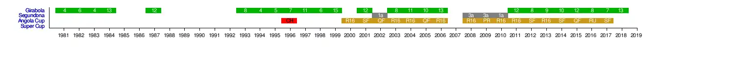The club made its debut in the Girabola in 1981 and won their only cup title in 1996 after defeating Primeiro de Agosto and qualified into the 1997 CAF Winners' Cup where they challenged with Gabon's FC 105 Libreville and won a goal in the first leg and lost 2–0 in the last, this was their only appearance in the continental competition.