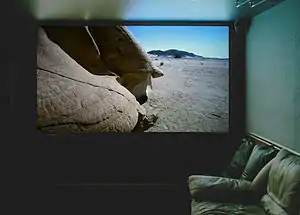 A projection screen is an installation consisting of a surface and a support structure used for displaying a projected image for the view of an audience. Projection screens may be permanently installed, as in a movie theater; painted on the wall;[1] or portable with tripod or floor rising models as in a conference room or other non-dedicated viewing space. Another popular type of portable screens are inflatable screens for outdoor movie screening (open-air cinema).