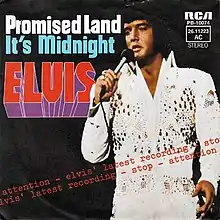 In December 1973, Elvis Presley recorded a powerful, driving version. Presley's version of "Promised Land" was released as a single on September 27, 1974. It peaked at number 14 on the Hot 100 Billboard charts,[8] and 9 on the UK Singles Chart in the fall of 1974.[9] It was included on his 1975 album Promised Land. The Presley version was used in the soundtrack of the 1997 motion picture Men in Black.