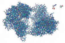 With the development of X-ray crystallography, it became possible to sequence protein structures.[18] The first protein structures to be solved were hemoglobin by Max Perutz and myoglobin by Sir John Cowdery Kendrew, in 1958.[19][20] The use of computers and increasing computing power also supported the sequencing of complex proteins. In 1999, Roger Kornberg succeeded in sequencing the highly complex structure of RNA polymerase using high intensity X-rays from synchrotrons.[18]