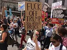 - "'Love America, Hate Trump.' Inside Today's Massive Anti-Trump Protests in London". Time. Retrieved July 15, 2018.