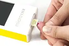 A significant advantage of home testing is the evidence that patient self-testing with medical support and patient self-management (where patients adjust their own anticoagulant dose) improves anticoagulant control. A meta analysis which reviewed 14 trials showed that home testing led to a reduced incidence of complications (bleeding and thrombosis) and improved the time in the therapeutic range, which is an indirect measure of anticoagulant control.[15] In 2022, a smartphone system was introduced by researchers to perform PT/INR testing in an inexpensive and accessible manner.[16] It uses the vibration motor and camera ubiquitous on smartphones to track micro-mechanical movements of a copper particle and compute PT/INR values.