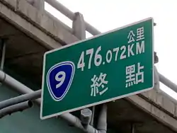 Provincial Highway No. 9 is an important highway across eastern Taiwan from Taipei City to Fangshan, Pingtung, Pingtung County. This provincial highway, at 476.1 km long, is the longest provincial highway in Taiwan and passes the regions of Taipei City, New Taipei City, Yilan County, Hualien County, Taitung County and Pingtung County.[1]