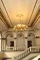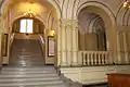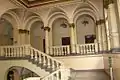 - THe ceremonial staircase with windows filled with etched glass coats of arms motifs of cities (Gdańsk, Poznan).