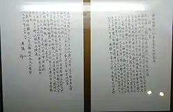 In March 1922, the Dowager Consorts decided that Puyi should be married, and gave him a selection of photographs of aristocratic teenage girls to choose from.[57] Puyi chose Wenxiu as his wife, but was told that she was acceptable only as a concubine, so he would have to choose again.[58] Puyi later claimed that the faces were too small to distinguish between.[59] Puyi then chose Gobulo Wanrong, the daughter of one of Manchuria's richest aristocrats, who had been educated in English by American missionaries in Tianjin, who was considered to be an acceptable empress by the Dowager Consorts.[60] On 15 March 1922, the betrothal of Puyi and Wanrong was announced in the newspapers. On 17 March, Wanrong took the train to Beijing, and on 6 April, Puyi went to the Qing family shrine to inform his ancestors that he would be married to her later that year.[60] Puyi did not meet Wanrong until their wedding.[60]