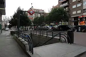 Puerta del Ángel (Angel's Gate) is a station on Line 6, located beneath the Paseo de Extremadura near the Puente de Segovia (Bridge of Segovia) in the district of Latina. It is located in fare Zone A.[1] The station is named after the Puerta del Ángel neighborhood, which is in turn named after a former access gate to the Casa de Campo park.