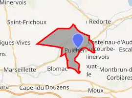 The commune is situated between the Aude and the Canal du Midi, and its inhabitants are called Puichéricois.