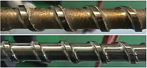![]() Before and after purging image of injection molding machine screw | |
