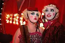 Pustra/Vile-een's Vaudeville was an unusual comedy duo that performed on the Alternative Cabaret and Neo-Burlesque scene in London, England and abroad from 2006 till 2009. With their trademark comedy and unusually strange stage acts,[1] they quickly established themselves as a refreshing, subversive and highly talented duo with a twist of Sideshow, known for performing with pancake make-up and in their underwear. The duo was a product of the MySpace era and they created their act online, inspired by Silent films and slapstick comedy of the early 1900s - 1930s and continued to use Social Media to reach more and more fans. Featured in Time Out Magazine's[2] Creatures of The Night article and a press shoot at the famous Hackney Empire alongside other established and emerging acts, the colorful duo was thrust into the spotlight. Noted appearances include Electric Picnic 2008 and the show Telling Tales (Too Terrible To Tell)[3]