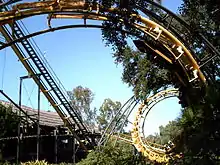 | _01.jpg.webp) Python's double-corkscrew element (chain lift and first drop in background) | |