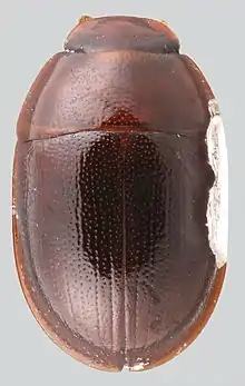 Small to tiny beetles (1.6–2.6 mm), orange brown to dark brown in coloration, with eyes fully divided in dorsal and ventral faces; short maxillary palps. The elytra are laterally explanate and the elytral punctation may present well defined elytral striae. A complete diagnosis was presented by Girón and Short.[1]