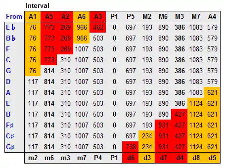| A | perfect fifth | 1.4953 | 696.6 | 18.00 | |