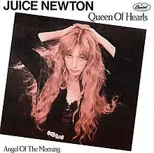 Following an appearance on the 1980 Rodney Crowell album But What Will the Neighbors Think, on which composer DeVito played guitar, "Queen of Hearts" had its highest-profile rendition in a version by country-rock singer Juice Newton from the 1981 album Juice. Newton would later recall: "I did ['Queen of Hearts'] live for about a year...Then I brought it to [producer] Richard Landis when we started the Juice album. He wasn’t convinced at that point that it was a breakout song but I told him I think this is a real cool song … so we cut it."[1] Newton's own favorite cut on the Juice album,[2] "Queen of Hearts" was issued as the album's second single and would reach No. 2 on the Billboard Hot 100 for two weeks in September 1981, behind "Endless Love" by Diana Ross and Lionel Richie. While still at No. 2, "Queen of Hearts" was certified Gold for domestic sales of one million units.