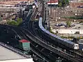 In 1964, the abandoned northern half of the Queensboro Plaza station was demolished.[11] One set of crossovers remains on the upper level as the Flushing Line's only connection to the rest of the system.[14] This connection is used for non-revenue moves, specifically to transfer subway cars to the Coney Island Shops for repairs, to transfer new cars to the Flushing Line,[14] or to move rolling stock to or from the Flushing line.