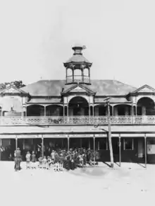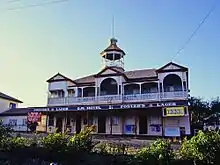 The Queensland National Hotel is a two-storey timber hotel in Mount Morgan, designed in 1890 by Rockhampton architect, John William Wilson, for widow Sarah Heiser who, together with other family members, was to run several hotels in the district.[1]
