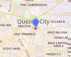 The Quezon City Hall is a government building which houses the office of the Mayor of Quezon City located along the Elliptical Road. The Quezon City Council is housed within the adjacent Legislative Wing.