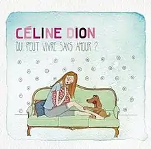 The lyrics and thirty-second previews of all songs from Sans attendre were posted on Dion's official website on 18 October 2012.[2] "Qui peut vivre sans amour?" became available as a digital download from the album on the day that Sans attendre was released. On 10 February 2013, celinedion.com announced that it was chosen as the third single.[3][4] On 8 March 2013, the promotional single cover art created by the illustrator Aurore Hutton, niece of former French President Valéry Giscard d'Estaing was revealed and the single was sent to radio in France.[5] In Quebec, "Qui peut vivre sans amour?" was released to radio stations on 18 March 2013.[6] The promotional single contains a new version of the song with less guitar and more piano and strings.[6][7] It makes the song "softer" but still "powerful".[6][7]