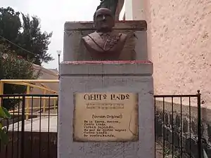 Bust of composer Quirino Mendoza y Cortés with plaque showing measures of "Cielito Lindo" and its lyrics.