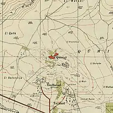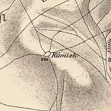 Pierre Jacotin named the village Kouni on his map from 1799.[8] In 1882, the PEF's Survey of Western Palestine described the village of Qumya as located being located on a knoll in the middle of a valley, surrounded by gardens of prickly pear.[9]
