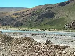 Río Grande (Spanish for "great river") is a river located in Malargüe Department of southwestern Mendoza Province, Argentina. It arises in the confluence of the rivers Cobre and Tordillo on the Andes range near Chile and ends at the Colorado River at the Neuquén Province border. Its total length is 275 kilometres (171 mi). It's the most plentiful river of Mendoza with a flow of 107 m3/s (3,800 cu ft/s).