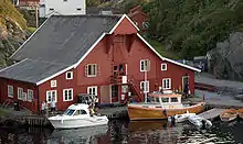 The 1.4-square-kilometre (0.54 sq mi) Røvær islands have about one hundred permanent residents (2014), as well as seasonal residents and visitors who rent vacation homes, stay at Røvær Seahouse (Røvær Sjøhus) or the newer Røvær Culture Hotel (Røvær Kulturhotell). The permanent residents who are not retired support themselves principally through farming, fishing, employment at the express boat service, teaching at the island's local school, working at the salmon fish farm, or by commuting to work on the mainland.[1]