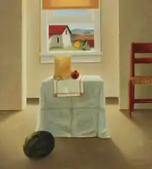 R.B. Sprague is driven by his never-ending exploration of scale and light. Painting in oil on linen the majority of Sprague's work focuses on interior spaces and the relationships of the objects he places within those spaces. He defines his compositions with common objects like tables and chairs but always leaves ample room for the viewer to create their own interpretation.[2]