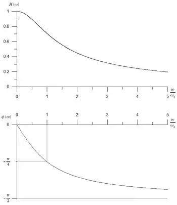 This shows that, if the output is taken across the capacitor, high frequencies are attenuated (shorted to ground) and low frequencies are passed. Thus, the circuit behaves as a low-pass filter. If, though, the output is taken across the resistor, high frequencies are passed and low frequencies are attenuated (since the capacitor blocks the signal as its frequency approaches 0). In this configuration, the circuit behaves as a high-pass filter.