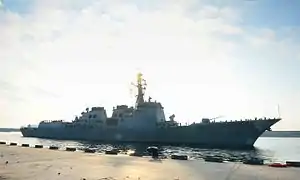 The ship features the Aegis Combat System (Baseline 7 Phase 1) combined with AN/SPY-1D multi-function radar antennae.[1]