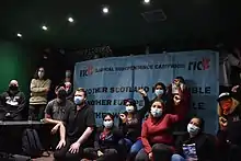 In late April 2021 it was reported that the group was "alive" and preparing for a second Scottish independence referendum.[16][17] Hustings were organised in the run-up to the May 2021 Scottish Parliament election.[18] An online Radical Independence Conference was held in June 2021, offering workshops on planning acts of civil disobedience to pressure the UK Government.[19][20][21][22][23] During the UN COP26 climate change conference in Glasgow, on 6 November, RIC organised the independence bloc of the Global Day of Action for Climate Justice march, which was the city's largest protest in nearly two decades.[24] The group organised under the slogan “It’s Scotland’s oil, keep it in the soil”. RIC also used COP26 as an opportunity to network with self-determination activists from other stateless nations which were excluded from the official UN conference.[24]