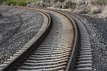 An unusual form of tie is the Y-shaped tie, first developed in 1983. Compared to conventional ties the volume of ballast required is reduced due to the load-spreading characteristics of the Y-tie.[27] Noise levels are high but the resistance to track movement is very good.[28] For curves the three-point contact of a Y steel tie means that an exact geometric fit cannot be observed with a fixed attachment point.
