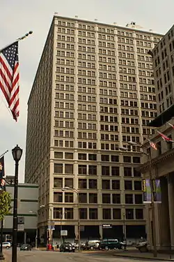 The Railway Exchange Building is an 84.4 m (277 ft), 21-story high-rise office building in St. Louis, Missouri. The 1914 steel-frame building is in the Chicago school architectural style, and was designed by architect Mauran, Russell & Crowell. The building was the city's tallest when it opened, and remains the second-largest building in downtown St. Louis by interior area, with almost 1,200,000 square feet (110,000 m2) of space.[2][3]