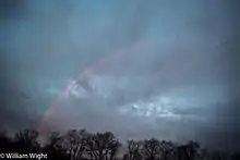 A sleetbow forms in the same way as a typical rainbow, with the exception that it occurs when light passes through falling sleet (ice pellets) instead of liquid water. As light passes through the sleet, the light is refracted causing the rare phenomena. These have been documented across United States with the earliest publicly documented and photographed sleetbow being seen in Richmond, Virginia on December 21, 2012.[57] Just like regular rainbows, these can also come in various forms, with a monochrome sleetbow being documented on January 7, 2016 in Valparaiso, Indiana.