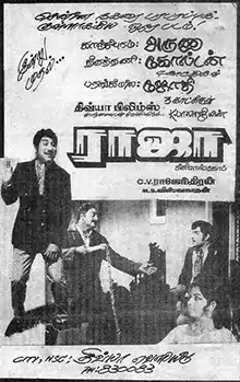 Raja is a 1972 Indian Tamil-language film directed by C. V. Rajendran. The film stars Sivaji Ganesan, Jayalalithaa and K. Balaji. The film had musical score by M. S. Viswanathan.[2] It is a remake of the Hindi film Johny Mera Naam.[3] It was highly successful at the box office.