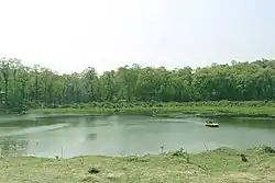 Raja Rani lake (Nepali: ne:राजा रानी) is a lake and orchid sanctuary located at Letang Municipality, the North of the Morang District, Province No. 1. The area is a wetland, surrounded by Sal (Shorea robusta) forest and lake is stream-fed but a dam regulates the water reserves,[1] therefore, the lake is classified as semi-natural freshwater lake. Of the three ponds, Raja Pokhari, Rani Pokhari, and Rajkumari Pokhari, Rani Pokhari has 1 sq mi (2.6 km2) of dense forest growing up from the water, and its orchid-rich habitat is a center of attraction.[2][3]