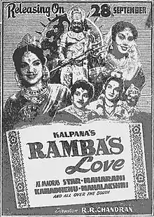 Rambaiyin Kaadhal (English: Ramba's love) is a Tamil movie starring P. Bhanumathi, K. A. Thangavelu and M. N. Rajam. The movie is a remake of a 1939 movie by Central Studios, was released in 1956.[1][2][3][4]