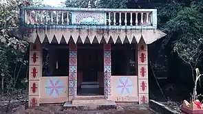 A temple dedicated to Hindu deity, Lord Ganesha was built in 2000.[10] This temple was built by a local resident of Rameshwar Wadi. It is located in the western part of the Wadi which is known as "Vatar". Although the temple lies entirely in the private premises of its builder, it is open for outsiders.[10] Various festivities and pujas are carried out in the temple throughout the year. There is no separate administration or a priest appointed in the temple, the owner takes care of all the maintenance and other matters of the temple building and its premises. The temple building is entirely made using red rocks and concrete. Its area is about 600-700 sq ft, while the front yard (angan) on the temple building is approximately of the same size. A small tulsi vrindavan (a sacred tulsi grove) is located at the right outer corner of the front yard. To the left of the temple, many flowering plants are grown. The temple itself is located within many trees.