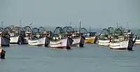 There is a yearly 45-day ban on fishery with motorboats in the region.[89] The fishing ban for the year 2012 was effective during the months of April–May.[89][90] The jetty at Rameswaram is the largest landing centre for fishing boats in the region and it usually comes alive after the ban, with the arrival of fishermen, boat captains, shore workers and others from their native places.[90]