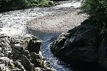 Randolph's Leap is an SSSI and area of countryside in Moray, Scotland. The area surrounds the River Findhorn and is actually named after the point at the river where the sheer rock banks are closest, where according to legend Thomas Randolph, later Earl of Moray, was pursuing a Comyn, who leaped to the other side and escaped back to his castle. The Comyn castle fell and the lands were granted by King Robert to Randolph. The name gradually changed from Comyn's Leap to Randolph's Leap. The nearest settlement is Logie Steading, a steading from where walks along the side of the river can be taken. This part of the Findhorn is renowned for its dramatic rocks, cliffs and waterfalls, and peaceful surrounding pine forest. Randolph's Leap is also an important wildlife area, with lesser black-backed gulls, woodpeckers and red squirrels.