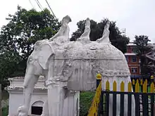 Rani Pokhari (Nepali: रानी पोखरी) meaning queen's pond, originally known as Nhu Pukhu (Newar: न्हू पुखू) meaning new pond, is a historic artificial pond located in the heart of Kathmandu, Nepal.[1] The square-shaped tank dates from the 17th century, and was built on the eastern side of the then city limits. It lies just outside a former city gate. The pond is one of Kathmandu's most famous landmarks and is known for its religious and aesthetic significance. Its dimensions are 180m by 140m.[2]