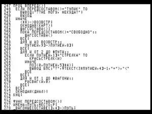 Rapira (Russian: Рапира, rapier) is an educational procedural programming language developed in the Soviet Union and implemented on the Agat computer, PDP-11 clones (Electronika, DVK, BK series), and Intel 8080 and Zilog Z80 clones (Korvet). It is interpreted with a dynamic type system and high level constructions. The language originally had a Russian-based set of reserved words (keywords), but English and Romanian were added later. It was considered more elegant and easier to use than Pascal implementations of the time.