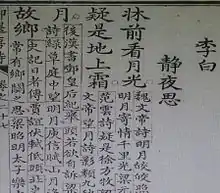 | Li Bai Poem 李白 静夜思 "Contemplating Moonlight" | Image of Kangxi edition page |