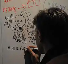Rat-Man is an Italian comic book about an inept superhero of the same name, created by Leonardo Ortolani in 1989. Although it was initially meant to be a satire of other superheroes, most prominently Batman, it has since evolved into an independent comic sporting a complex, evolving continuity. The comic is well known for its nonsense humor à-la Monty Python, its engaging storytelling and its frequent breaking of the fourth wall. Ortolani often pays both direct and indirect tribute to other comic authors (Jack Kirby above everyone else) and he frequently makes his characters use pop-culture references, either generic or specific to the native Italian context and background. The comic was published by Panini Comics as new installments under the name of Rat-Man Collection (closed with issue #122) and is currently being published as reprints of older stories in Rat-Man Gigante.