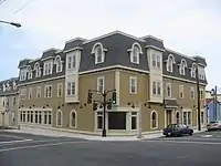 Rawlins Cross (also Rawlin's), formed by the intersection of Prescott and Flavin Streets, Monkstown, Rennies Mill, Queens, and Military Roads, is a well known St. John's, Newfoundland and Labrador landmark. Military Road, built in 1773,[1] was one of the first roads in this area that joined Fort William with Fort Townsend. Monkstown Road (formerly Georgetown Road)[2] was built in the early 19th century and Prescott Street around 1840. It is on the edge of Monkstown, which is part of the Georgetown Improvement Area and Downtown St. John's.