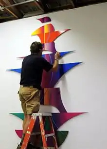The precise color gradations in Ray Burggraf's paintings are frequently mistaken as having been created by airbrush. In fact, Burggraf creates the distinctive coloring by brushing acrylic paints by hand,[20] using a specialized technique of Burggraf's invention. According to Ray Burggraf: Retrospective, by Roald Naasgard (2006), Burggraf describes the process of creating his color constructions as "a combination of an act of meditation and physically exacting exercise." The paintwork must be completed quickly, and precisely, because acrylics can dry in minutes.[3]