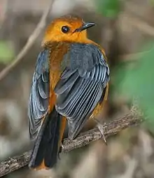 It is mostly orange-brown with slate-grey wings and darker tail. Its natural habitat is subtropical or tropical dry forests.