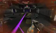 Red Eclipse is a multiplayer first-person arena shooter, similar to Cube 2: Sauerbraten, with a style of play comparable to Quake III Arena or Unreal Tournament.[4][5] Players fight in two randomly assigned teams — Alpha (Blue) and Omega (Red) — which can be changed with mutators. Game modes include: Deathmatch (kill to score), Capture the Flag, Defend and Control (players must secure control points to win), Bomber Ball (a bomb must be brought into the enemy goal before it explodes), Race (players compete for the number of laps), as well as online cooperative map editing. As in Cube 2, each mode can be further modified with several mutators, such as FFA (Free-For-All, i.e. players fight for themselves) and Instagib (all hits are lethal, and players spawn only with a rifle).[4][6][7] Unlike Cube 2, Red Eclipse features parkour movement, such as vaulting or running along walls.[8][9]