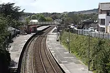Redruth station serves the town of Redruth, Cornwall, United Kingdom, and is situated on the Cornish Main Line between Truro and Camborne. The station is 310 miles (500 km) from London Paddington via Bristol Temple Meads.