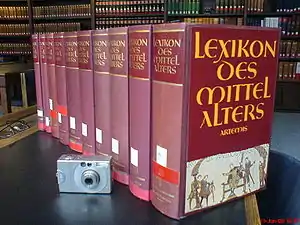 Reference works include encyclopedias, almanacs, atlases, bibliographies, biographical sources, catalogs such as library catalogs and art catalogs, concordances, dictionaries, directories such as business directories and telephone directories, discographies, filmographies, gazetteers, glossaries, handbooks, indices such as bibliographic indices and citation indices, manuals, research guides, thesauruses, and yearbooks.[2] Many reference works are available in electronic form and can be obtained as reference software, CD-ROMs, DVDs, or online through the Internet. Wikipedia, an online encyclopedia, is both the largest and the most-read reference work in history.[3]